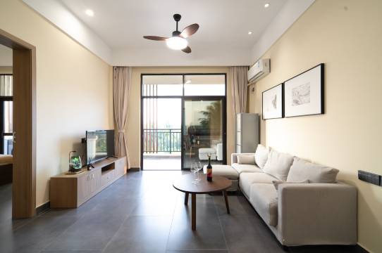 环境堪称治愈系范本。民宿被茂密的椰林和芭蕉林环绕,推开门就是满眼绿意,连空气里都飘着淡淡的自然气息。院子打理得清雅别致,有花有茶座,阳光洒下来时,随手一拍都是不用滤镜的朋友圈封面图,夜晚灯光亮起更显温柔静谧,完全是远离喧嚣的世外桃源感。房间也格外舒服,采光通风极好,床品柔软得像云朵,细节里满是温馨。