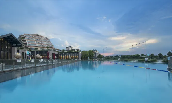 酒店位于萧山区水博大道 118-1 号,邻钱塘江,近水利博物馆,周边环境清幽,驾车至西湖灵隐、湘湖等景区约30分钟。酒店设计融合现代与古典风格,客房分布于别墅中,主打原木和水墨风情,部分带阳台,亲子主题房等房型多样。亲子设施丰富,萌宠乐园可让孩子与 30 多种近百只动物互动;还有 500㎡室内儿童乐园、户外托马斯小火车、挖沙池等。另有健身房、书吧等设施。设有中西餐厅及下午茶区域,临湖就餐可赏景。周边有中国水利博物馆、烂苹果乐园等景点,适合亲子度假和休闲放松。酒店周边也有诸多景点值得一游,如中国水利博物馆(周一闭馆),馆内可以了解水利工程发展历史,适合亲子共同参观;无论是亲子度假、休闲放松,酒店都能凭借其独特的环境、丰富的设施与贴心的服务,为宾客带来难忘的体验。