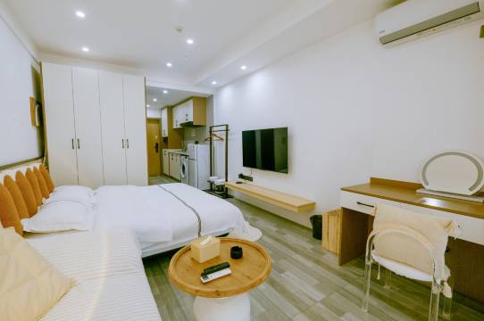 带宠物一起来的,本来是没有很高期望的没想到还不错,卫生方面很干净,厕所浴室干湿分离,还有小桌位置可以放东西吃,前台服务热情,楼下就是美食店和超市很不错了