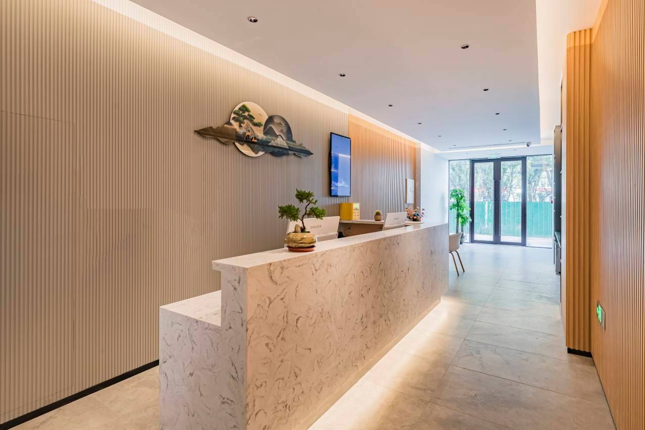 酒店环境太让人惊喜了,大堂设计现代又不失格调,随处可见的绿植把空间衬得格外清新。房间里采光超棒,家具质感在线,连细节处的装饰都透着用心,住得特别舒服。设施维护得很到位,房间里的智能设备用着顺手,卫浴用品品质不错,整体环境让人觉得物超所值。房间里的床品和床垫舒适度满分,环境设施没得挑。 酒店整体环境很有设计感,浴室干湿分离做得彻底,热水供应稳定。公共区域干净整洁,体验感极佳。地理位置虽然不算市中心,但环境特别清幽。电视是智能的能投屏,住起来方便又舒心。