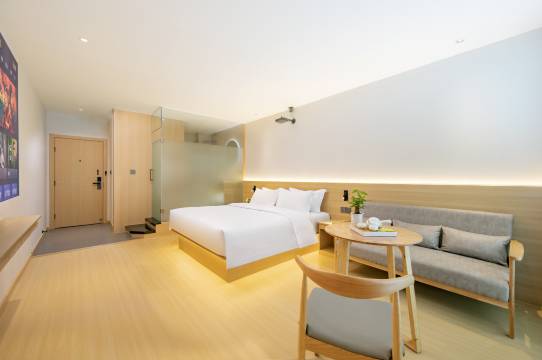 房间非常整洁,可以投影看电影,前台免费提供腾讯的超级VIP,过来这边出差在网上看的这家酒店,前台服务也非常好,还贴心的送了免费咖啡,咖啡还是现磨的,非常不错,免费停车,停车场非常大,很方便。下次出差还来这家酒店,应有尽有 哈哈哈哈哈👍👍👍