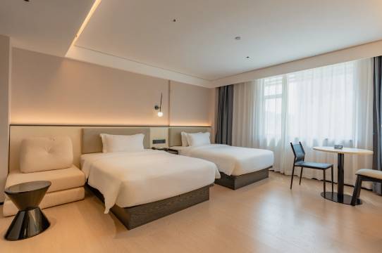 前台小姐姐服务态度很好 房间卫生很干净 还有健身房什么的 关键是距离高铁站也很近 非常不错的一家酒店