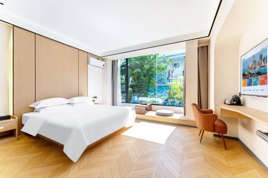 我们房间干净,面积大。设施简约优雅。 用品很齐全。位置优越,去哪都方便。 服务也是超级热情体贴。 之前来了住两天,在别的地方住的不理想,又回来住了三天。