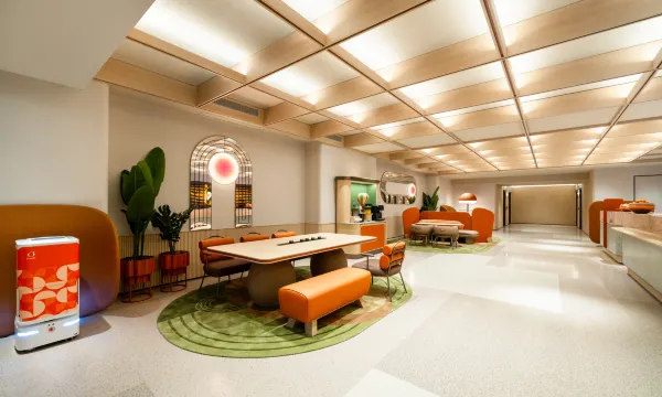 桔子湛江万达广场酒店,位于中央荣盛广场17栋,毗邻湛江网红景点海湾大桥,雄踞万达广场、金沙湾观海长廊、招商邮轮城、荣盛广场四大商圈交汇处,近招商邮轮港,万达广场,周边有金沙湾景区-红嘴鸥游船。酒店拥有美丽海景景观、配有空中海景休闲大堂,设有自助里餐厅、自助洗衣房、自助健身房、及大型免费停车场等生活休闲场所,让您在湛江核心CBD感受桔子的阳光、健康、活力!酒店以[乐活」为品牌理念,将健康可持续发展的生活态度在旅途中展现,提供更有活力、更阳光正向的鲜活住宿体验,从「乐食碳水快乐盾包咖啡/低脂健康三大功能分区」「乐住:新鲜桔子畅吃1大桔大利香氛/甜橙天然精油洗护」[乐行:24小时健跑房+城市跑步地图」出发,创造独特的乐活体验,绿色健康。桔子酒店同时有全新智能化的服务展现,利用"30秒入住,0秒退房,15分钟响应",配有智能服务机器人为宾客提供高效、愉悦的服务体验。期待您走进桔子,我们将全程为俗提供细致、贴心的服务,让您全方位感受桔子酒店的独特魅力,成为您商务,旅游度假的理想选择!