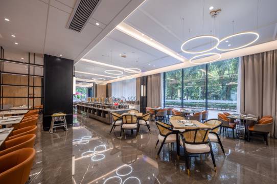 酒店就在万达乐园旁边,据说万达乐园11月份要重启了,酒店位置很好找,有免费停车位,停车方便,前台小姐姐服务周到,热情,房间很大,还带阳台,视野很好,整个房间隔音好,床品很舒适,卫生细节很到位,连锁酒店品牌值得信赖,早餐丰富,周边配套也很方便~