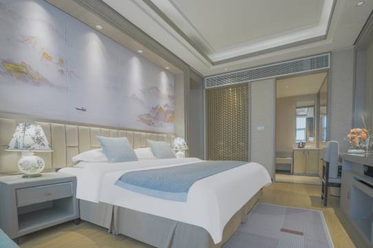 酒店很棒,地理位置方便,不远就是万达广场,从高铁过来打车不到10分钟。房间干净宽敞,前台服务热情周到,房间靠小区非常安静,值得推荐