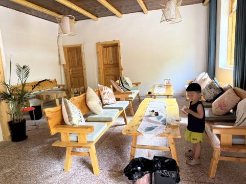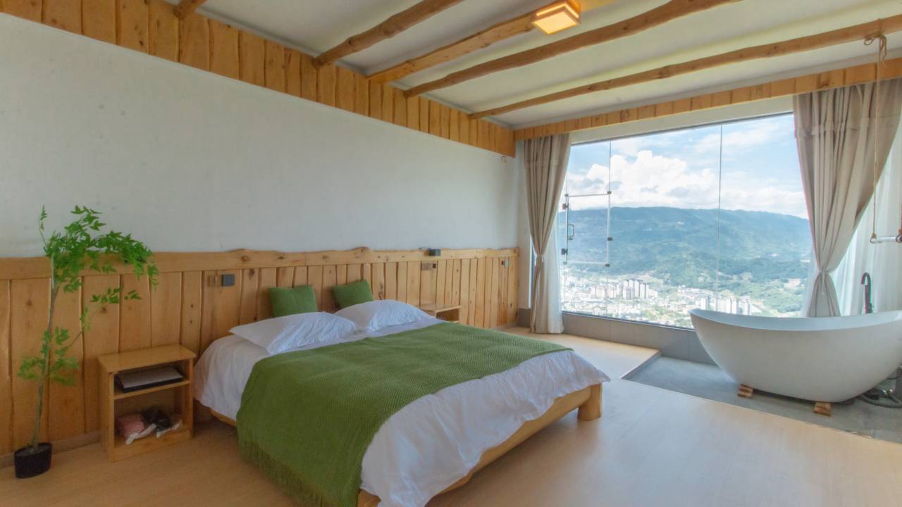 我们是当天晚安到的,一度怀疑走错了路,民宿位置是在山上,虽然不好找,但是风景绝美,房间可以俯瞰整个县城,早上还有云海。周围环境是很棒的,房间很大,也很漂亮,就是卫生间设计不太合理,洗漱台很小,不能放东西,对于女性客人要化妆什么的不是很方便,早餐也比较简单。就看怎么选择了,喜欢体验环境好的可以冲,如果更在乎入住的舒适,在乎房间硬件设施就不建议了