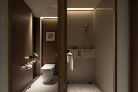 在携程看到这家酒店设计感排行第一,而且评价里有人说从来不评价酒店,这家忍不住来好评,就决定来这里住,果然没让我失望。地理位置优越,去哪里都方便,周边有很多评分很高的餐厅。房间是日式侘寂风格,非常简洁轻奢。干净宽敞,设计细节到位。连纸巾都有压花,而且每张内容都不一样,上面都有诗句。淋浴间热水很棒,按键式的,第一次用要小心从顶喷下来过程凉水。两个排水口不积水,地板是防滑石材,不冰脚,也不滑,洗浴体验感相当好。洗手盆的镜子是倾斜的。智能化控制灯光,窗帘,非常方便。最好的设计就是隐藏,见光不见灯。采光通风好,排风扇的声音也不打扰休息。隔音效果佳,听不到旁边房间的声音。前台服务高效,礼貌,周到。早餐也很丰富,座位景观都很棒。体验感满分,强烈推荐!