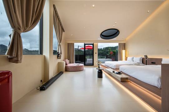 房间很宽敞,卫生干净,晚上山里很冷,空调还是给力的;前台服务很好,有问必回;他家还可以点晚饭吃,我们选择去外面的店试试,只能说很后悔;早上去吃早饭,由于太冷,贴心的帮我们送到房间来,还可以点咖啡。那边那么多民宿,我们比较庆幸选了这家