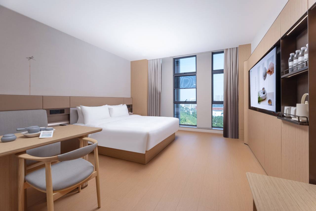 这次入住体验超出预期,整体特别满意。环境上闹中取静,装修风格简约大气,公共区域布置精致,窗外视野开阔,不管是休闲放松还是出行暂住都很有氛围感。设施齐全且维护得很好,床品舒适柔软,卫浴出水流畅,空调、网络等设备运行稳定,完全能满足日常居住需求,细节处都很用心。服务态度热情周到,从办理入住到退房全程高效顺畅,工作人员有求必应、耐心贴心,遇到问题都能及时妥善解决,让人感觉很温暖。卫生方面无可挑剔,房间地面、桌面、卫浴死角都打扫得干干净净,床品、毛巾一客一换,整洁无异味,住着安心又舒适,是会推荐给朋友、下次还会优先选择的酒店。