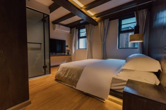 房间里的装修非常现代化,实木家具很有质感,地理位置优越,就在古城里游玩,很方便!