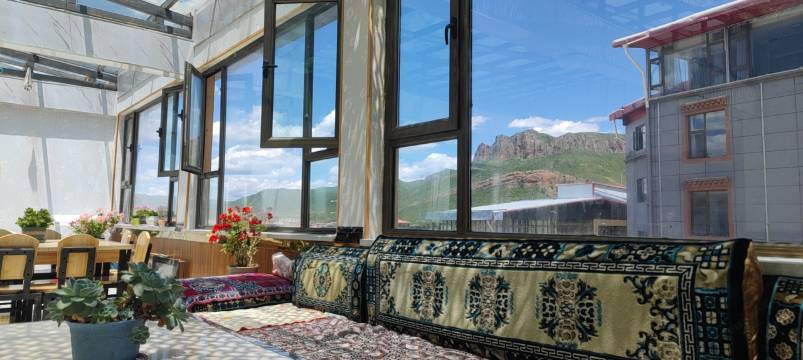 酒店位于四川景区门口,位于白龙江河畔,房间冬暖夏凉,地理位置极佳,六楼阳台可看到郎木寺全景,目眺红石崖,夏日可观看日出及日落时日照红石崖,冬季可看银装素裹,分外妖娆的郎木寺雪山。