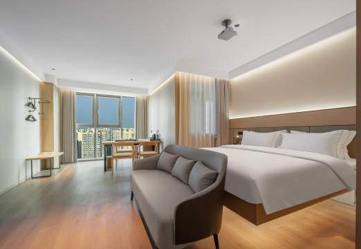很喜欢这家酒店。躺床上不想动,喊小度调空调拉窗帘,控制灯光 空调 早餐还能送房,晚上还有银耳羹,免费停车也不用找车位,住着真的太香了~