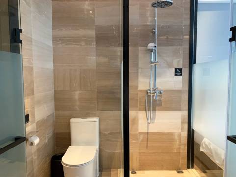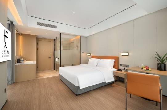 酒店新开的,哪哪都干净整洁,地下停车库超级大,入住前酒店提前给开好了空调,进去爽歪歪,就冲这一点必须给个大大的赞👍机器人送餐非常方便,有待改进的地方就是洗澡时没有放换洗衣服的地方,还有就是可以再放个桌子用来办公或者放东西