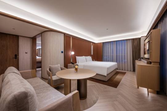 服务很好,房间温度很高,房间设计很合理,房间空间也很大,还送了考试的礼物,早餐也能打包至房间,智能马桶和淋浴都不错。