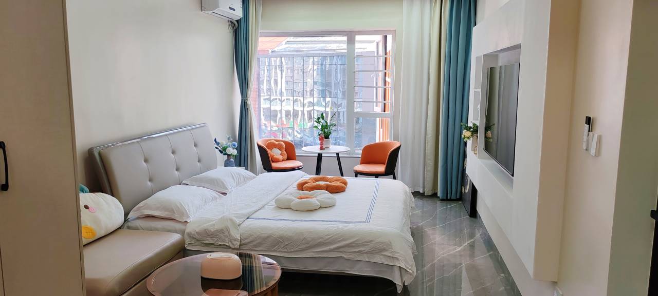 房间宽敞、卫生,冰箱、空调、餐具厨具等配套设施一应俱全。老板服务贴心。