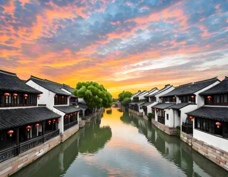 民宿就在古镇中主河道边上,智能马桶、戴森吹风机、巨幕投影仪等细节配置让体验超越五星级酒店,非常不错。。。。