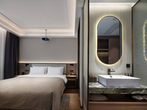 本酒店位于安阳市北关区人民大道(原安阳县交通局)。落座于古都安阳市美丽城市北关区,酒店近邻中国文字博物馆、殷墟博物馆、殷墟、万达北大街、仓巷街、文峰塔等景点。酒店出行交通便利,位于人民大道主干道上,酒店门口即为电机厂公交站(19、47、32、48、41),周边汇聚了美丽华购物广场、安阳印象汇、万达广场、水晶超市等综合商场,给您全程旅游带来愉悦的享受及便利的购物体验。酒店配备齐全,环境优美,高级智能客控嵌入,融汇高端酒店设计理念,装潢艺术构造于一体的高端配置酒店。酒店房间配备高品质舒适床垫、超柔云绒被、慢回弹记忆枕等,让你在旅途劳累后感受到超级温馨的旅居环境。同时,酒店提供健康美味的营养早餐供您选择,房间百兆光纤覆盖,智能窗帘,智能马桶,中央空调,唤醒全屋智能和无线充电系统,为您提供优质、高级、便捷的入住体验。酒店为每位贵宾提供自助洗衣服务,并配套独立停车场和充电桩,让您的旅途不再是舟车劳顿,更是想您所想,及您所及,打造超值的入住体验。