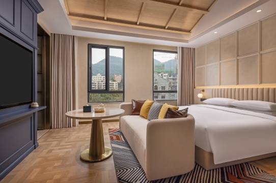 房间空间比较大,装修风格较高级,服务非常周到而且充满人情味,在餐厅吃了中餐非常美味且价格低廉,比外面餐馆各方秒秒杀。酒店环境安静优美,离江边很近。重点表扬小琳,小洁和小阳花花,还有当天所有为我们提供服务的工作人员都很好。有任何疑问工作人员都会非常快速的上门解决,本来我都撤回了消息但工作人员还是快速看到了并快速给了回复和解决。而且酒店门口有专门给流浪猫放口粮,服务人员对猫猫也很有爱心🥰