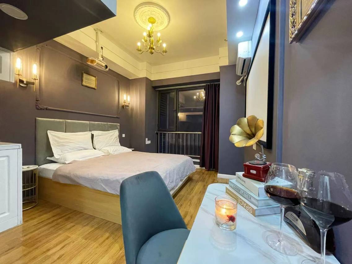 房间干净卫生,设施完善,隔音不错,有落地窗,有投影,地理位置非常方便,点外卖也非常方便,推荐推荐推荐