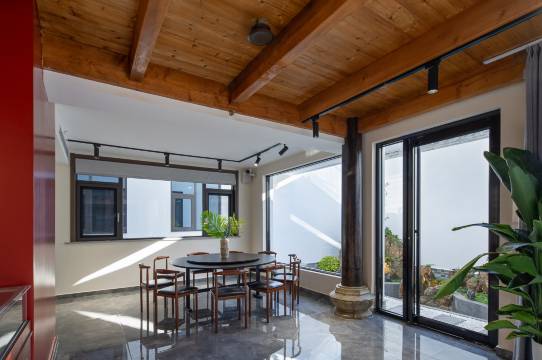 一进大门,给我们惊喜连连。首先这是两栋清朝的古宅整体迁移过来的。原来是三品大员的宅邸。整个建筑规整大气,全榫卯结构,花窗和梁雕都非常精美。院落都被设定为公共区域,给人感觉不闭塞拥挤。