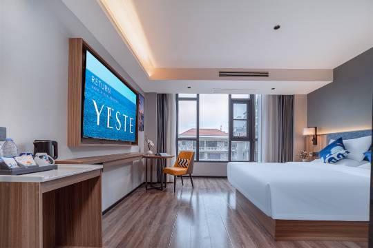 本店是一家智能家居酒店,周边饮食娱乐众多,出行便捷,交通方便。 现代化简约装修风格,房间配备舒适大床,高速独立WIFI,小度智能客控,24小时热水系统(2秒出热水),独立空调。让您感受到更加贴心细致的入住体验。提供瓶装水,便捷的客房设施定能让您倍感舒适。 优美的环境,再搭配上细致周到的服务,酒店的休闲区定能满足您的品质需求。酒店设有24小时前台咨询服务,为下榻至此的您提供贴心的行程安排。 全体同仁真诚欢迎您