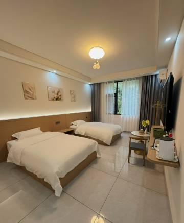 位置就在路边一个村庄,房子房间很新,设施齐,床品毛巾纯棉的,干净宽敞清静便利楼下是餐厅。早上配的早餐,满满两大碗面条🍜,根本吃不完