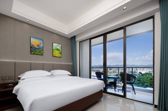 酒店位置好,交通便利,前台工作到位,服务态度好,给人很好的宾至如归感觉,装修风格豪华温馨清新时尚,卫生干净整洁,安静舒适,空气清爽视野开阔,崖城城区和青山美景尽收眼底,还有早餐品种多鲜甜可口,太棒棒啦。