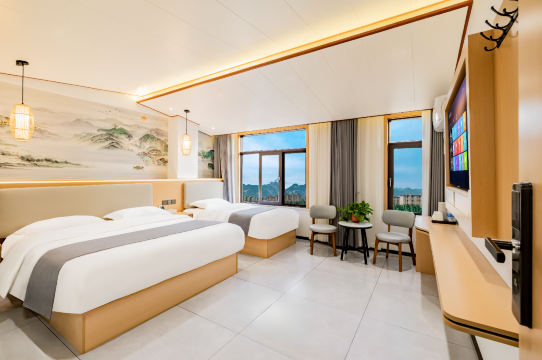 入住酒店体验非常好!位置优越好找,附近的公园、景点、美食、超市齐全方便,离华山也很近,环境好,硬件设施和装修风格很上档次。服务更是亮点,热情周到温馨,免费接送高铁站和游客中心,停车场停车也很方便,房间宽敞明亮,整洁的一尘不染,床品很柔软亲肤,隔音很棒,深度睡眠,热水给力,洗衣晾晒超方便,观景台可以品茶悠闲,性价比相当高,值得强烈推荐!再来会继续住这儿!