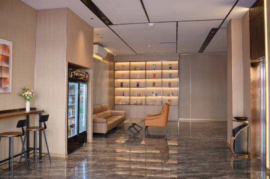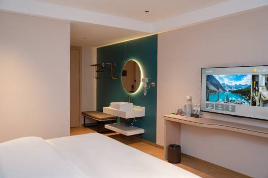 酒店整体上还是不错的,酒店较新。房间宽敞明亮舒适整洁,位于镇中心地段,离高铁站不远,交通方便。前台服务热情大方。