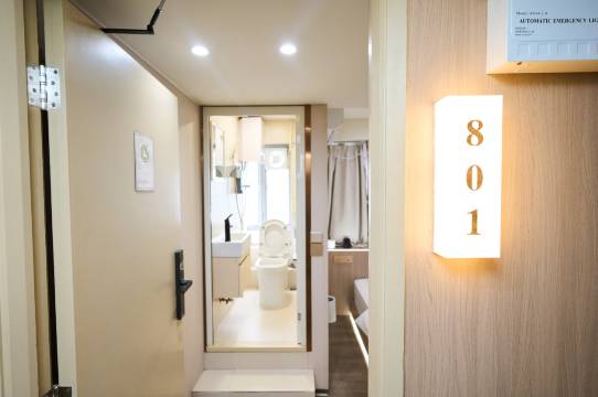 酒店设施很新,非常干净!隔音很好,安静舒适!老板人很好!接待员也非常非常好!友善通情达理!!!地理位置优越,出门两分钟就是地铁,而且这个价格真的非常划算了,我感觉是捡到宝贝了!!!!必须好评!以后锁死这家!!!btw,拍照拍的有点压缩,实际空间其实还是挺大的!!!可以参考正常的空调图片~
