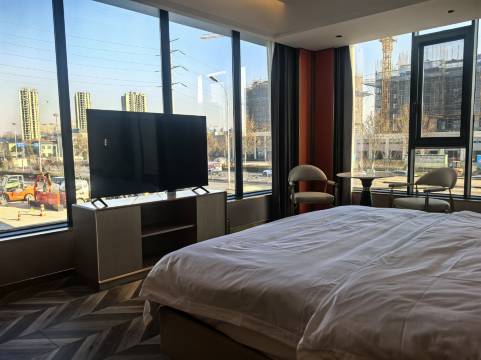 房间干净,智能遥控,靠近大街但不是很吵,睡觉舒服。门口停车还方便。