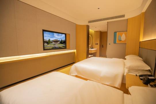 干净整洁 门口在修路,早餐自助还可以,后面🈶自己的停车场,另外由于修路周边没啥吃的,但住宿环境很满意,另外🈶掉了一件T恤,店家联系我这很好,酒店🈶电梯,负一层🈶健身器材,房间智能小度且干湿分离。