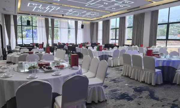本酒店位于“沫若故里”--乐山市沙湾区,沙湾客运站斜对面,坐拥十余亩绿化的花园式酒店,可露营、举行户外婚礼,有篮球场、羽毛球场、乒乓球场等户外运动场地及室内健身器材,配备新能源充电桩的超大停车场,可同时停放130辆车。酒店集住宿、会议、宴席于一体,装修现代时尚大气。配备香薰系统、全屋静音新风换气系统,确保空气清新;配置亚朵同款零压枕,乳胶记忆床垫,高端檀香洗浴用品,品牌智能马桶。采用恒温恒压热水系统,即出热水。部分房型配备智能化语音系统,能语音操控灯光空调电视窗帘。3-8楼为酒店客房,配备自助洗衣房、晾晒区,部分房型配备洗衣机、冰箱。配有可容纳500人的大型会议厅及中小型会议室,配有可同时承接100桌宴席的宴会厅及大中小商务包间,早餐厅可容纳100人同时就餐,由专业的厨师团队打造各种美味佳肴。酒店秉承“精于品质,专于服务,诚于价格,美于住宿”的经营理念,全体工作人员以热情的服务恭候您的光临!