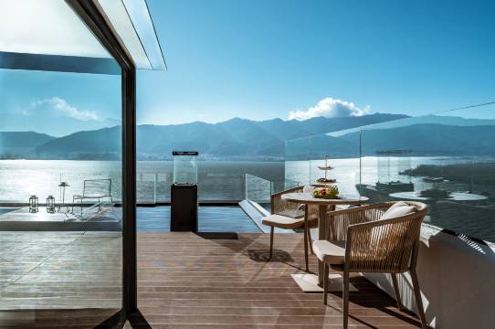 房间设计很精致,很用心,推开门就可以看到洱海,超大玻璃窗很适合安静的呆着,房间外面还有阳台和躺椅,吹着小风喝着茶,悠哉悠哉,好不惬意。