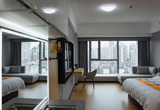 房间很干净,卫生间也很干净,家具整体布置也很合理,落地窗风景非常好,整面落地窗视野开阔,智能设备很好用