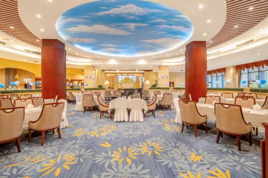 宾馆同时拥有现代化国际会议厅,配备投影仪、同声传译、远程电视电话会议系统等现代化设备,是举办各种会议的理想场所。专业的宴会服务团队可以为客人精心策划各种形式的宴会,优质的服务确保每一次的宴会和会议圆满成功。
