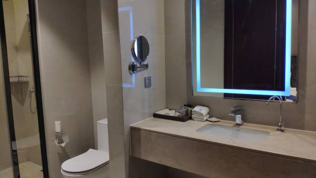 酒店位于新区比较安静,周围商业不多,房间隔音好,床垫软硬适中,睡得很舒服。整体体验非常放松,适合家庭出游中转入住。