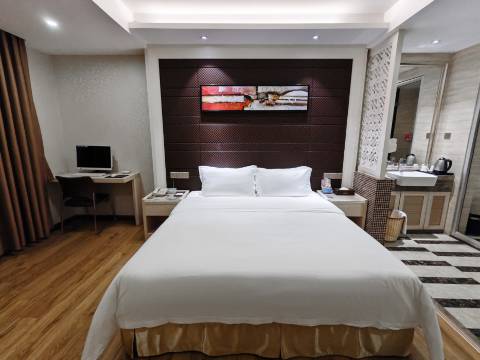 酒店位于吴川市人民西路158号(近吴川中心市场)。拥有各式客房,房间配有无线网络,24小时冷热水,液晶电视,独立空调等,酒店全体员工热烈欢迎您的光临!酒店设施:酒店拥有各式客房都有窗户,大部分房间宽敞明亮,大堂装修豪华;酒店内拥有地上停车位多个。酒店周边商圈:酒店距离吴川中心市场步行3分钟,三·角符5分钟,新世界广场5分钟,坐车同德城商业街5分钟。酒店周边医院:距离吴川西南医院步行3分钟左右,吴川市妇幼保健院3分钟,距离吴川人民医院坐车5分钟左右。酒店周边车站:距离海滨客运站5分钟左右,距离吴川汽车站5分钟左右,距离吴川高铁站15分钟左右左右。酒店周边景点:酒店距离江心岛5分钟左右,距离消防主题公园5分钟左右,鼎龙湾国际海滨度假区15分钟左右。酒店周边美食:旁边就有24小时茶楼,周边有小食。