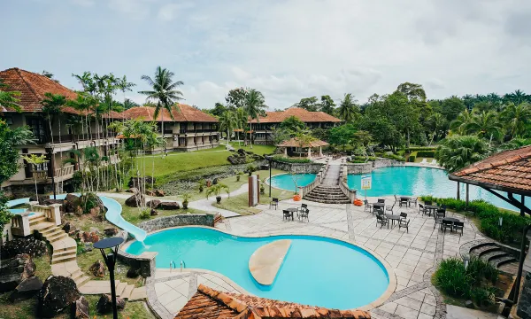 这个地方真是太棒了……度假村的景色美得令人惊叹!😍😍😍设施一应俱全。虽然是老度假村,但维护得很好。套房价格非常实惠,还包含自助早餐,套房里有浴缸、阳台、沙发、特大号床、梳妆台,阳台风景也很棒,设施齐全……游泳池很大也很干净,还有滑梯呢。我和全家人都非常喜欢泳池滑梯。不知道为什么,即使是周末人也不是很多,但这里一点也不让人感到诡异……目前为止一切都很好……