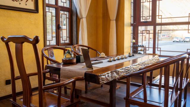 整个是一个大的民居类型酒店,停车场非常非常大,进去的地方路有点窄,开车可能要当心点,里面有点木质的味道,不太习惯,但小地方也不能要求太多了