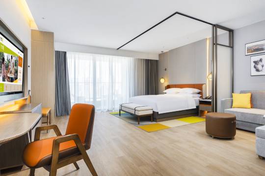 韶关翁源希尔顿惠庭酒店,坐落于韶关市翁源县龙仙镇滨河西路138号,地处翁源核心区域,毗邻龙湖,坐拥一线湖光美景。周边环绕锦绣新都汇、锦绣广场购物中心及龙湖广场商业中心,购物休闲便捷无忧。酒店距离高速出入口及冷泉滩风景度假区均仅需十分钟车程,至东华山4A级风景区亦不过十六分钟车程,地理位置得天独厚,风景旖旎,交通畅达,便于宾客轻松前 往各大商业枢纽及旅游胜地。酒店内设各类精致客房 ,涵盖灵动大床、灵动湖景大床/双 床、灵动豪华大床及湖景套房等多种房型,满足不同宾客需求。艺术宴会中心含21个雅致包间及4个宽敞明亮的宴会厅,满足各类聚餐及宴会需求。绿洲大堂、灵感用餐区、无边泳池、健身房&洗衣区、高吧座位区&上网打印区等设施一应俱全 ,更设有24小时心选小铺与自助饮吧 ,为宾客打造灵活舒适的居住空间 ,让宾客在旅途中亦能享受如家般的自在与惬意 ,深刻体验“乐居由你, Free to be you”的旅居哲学。