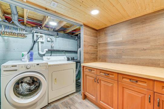 此乡舍配有壁炉和平板电视,让您可以尽情放松享受。厨房配备了烤箱、炉灶和微波炉。便利服务设施包括书桌和洗衣机。