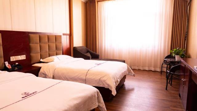 宾馆环境很好,有停车场,停车方便,标间再配两把椅子和一张小桌子就更完美了。