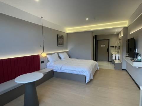 酒店位置太加分了,紧邻318国道,门口有免费停车场,自驾停车完全不用愁,对于开了一天车的我们来说太省心了。房间是今年新开业的,设施特别新,还带全屋智能语音控制,喊一声小爱同学就能开关窗帘、调灯光,科技感拉满,住起来很便捷。卫生更是没话说,床单被褥洁白无异味,卫生间干湿分离,淋浴出水量大又恒温,洗漱用品齐全,细节处干干净净让人放心。