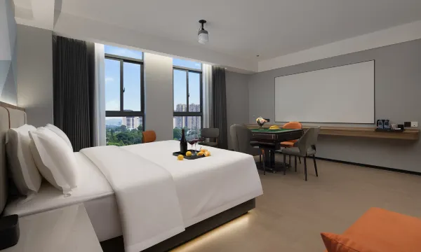房间很大很宽敞,全屋智能家电很方便,前台还有免费的酸梅吃咖啡。和爆米花甜品可供选择,前台的小姐姐服务态度也特别好,有早餐交通便利,棒棒哒。