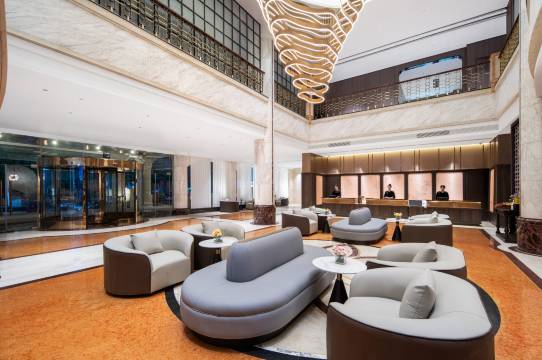 大厅很大,停车方便,房间干净卫生,前台服务好,早餐丰富,离高铁站很近,交通便利,很满意的一次入住,推荐!