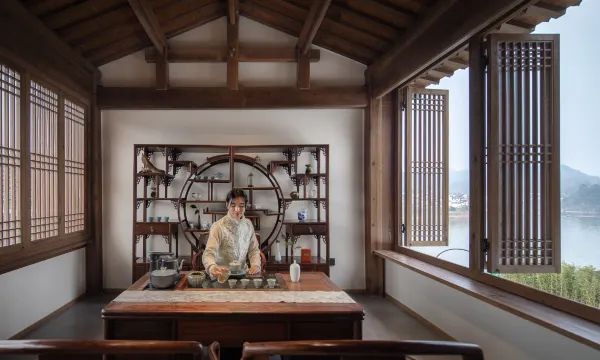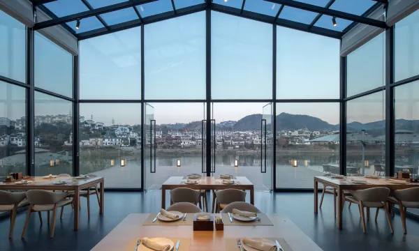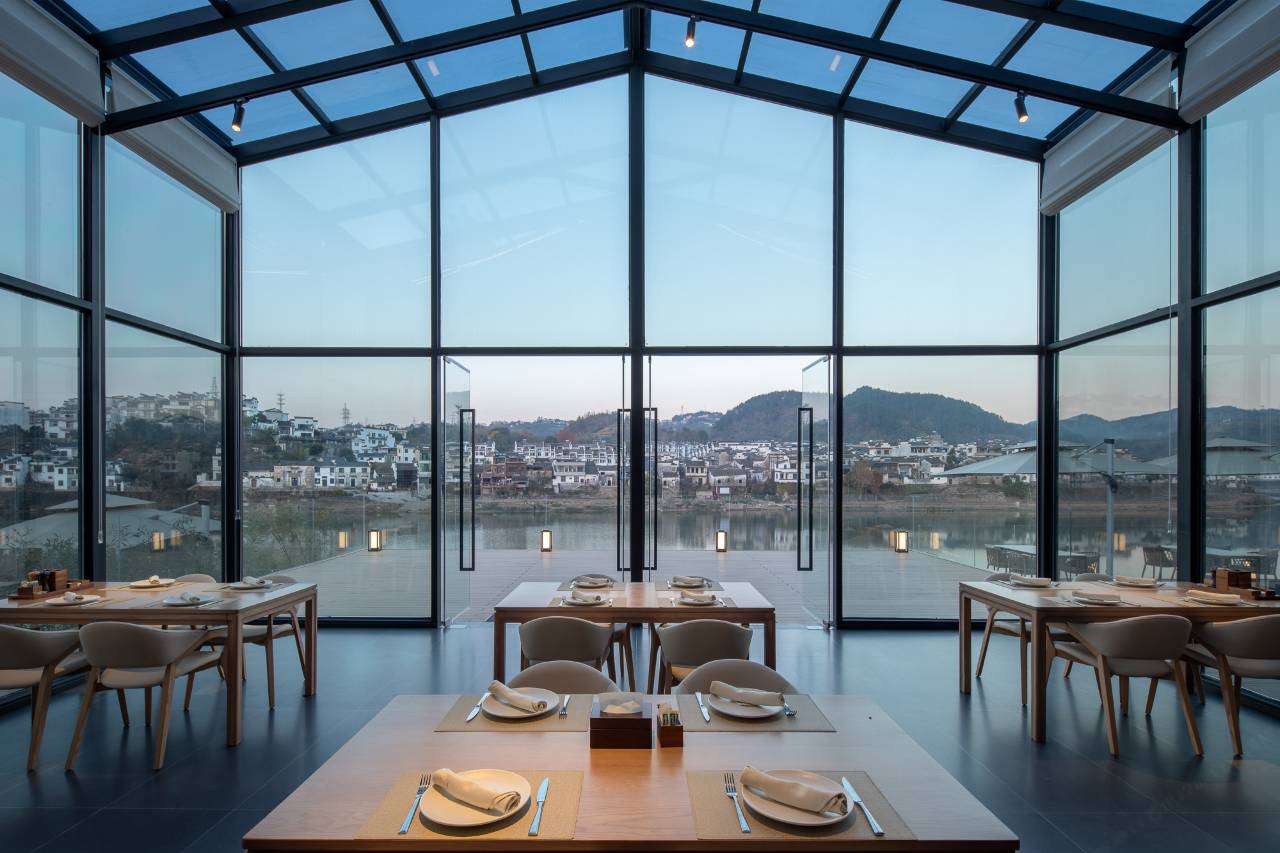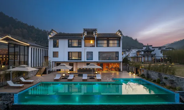 酒店位于中国四大古城之一的徽州古城(歙县)5A级景区南侧紫阳山下,新安江畔,毗邻江南都江堰“渔梁坝”,是徽文化、徽商的起源地。“徽”者,美也,酒店所在地不仅是儒学名家朱熹的讲学旧址,也是李白称赞仙居的历史古迹。酒店由德国红点建筑大赛获奖团队参与设计,数百名资深徽派建筑工匠共同打造目前歙县12000m²大型徽派园林景观酒店建筑群,秉承徽派建筑美学和“四水归堂”设计格局,融合现代化智能家居精心打造徽派山水观景客房。院落环绕,白墙黛瓦,沉浸式感受徽派传统文化之美。酒店绿化率60%。一期拥有三大特色徽派庭院“渔梁院+紫阳院+烟雨院”、智能家居系统、会议室、江景餐厅、SPA、KTV、江景健身房、江边泳池、茶室、徽文化展厅、户外草坪、江景休闲区等特色服务区域。在山水之间,还原度假生活的本真摸样,以自然取代喧哗,以灵性宽慰内心,打造山水间的灵性家园;沉浸式感受浓郁的徽文化氛围、徽州非遗体验活动和专业细致的管家服务,置身于优雅的江南意境。
