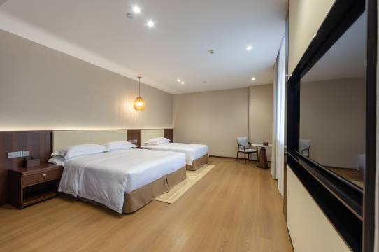武当山万达悦华酒店·朝圣之前,坐落于武当山景区山门武当金街,是武当山旅游股份联合万达酒店及度假村打造的道系生活方式酒店。酒店设有四十余间多样客房,“观峦”开阔迎山色,“观心”静谧享安宁,“观悦”清幽品闲适;4个诗意盎然的庭院,满溢着诗情画意,尽显人文关怀;1个雅致的茶苑,宁静致远,悠然自得;酒店还配备了洗衣房,同时可共享万达酒店群中西餐厅、健身房、会议厅等优质配套服务设施。无论您是养生团建、亲子度假、会议会客……皆能为您提供全方位贴心的“武当服务”。朝圣之前建筑群古色古香,回廊曲折,景致错落,一步一景间,如庄生晓梦,穿越古今;庭院布局精巧,一花一草中,彰显“道法自然”的道家中式美学;茶苑宁静祥和,一杯一盏间,倡导“清静无为”的道系生活方式;画廊彩绘精美,一笔一画里,书写“天人合一”的中国哲学思想;文创品牌“朝圣之礼”独具匠心,为您推出一系列具武当特色的文创纪念品和定制祈福礼,为您的朝圣之旅留下深刻美好的“武当印记”。朝圣之前酒店前厅直通大岳武当城中心广场,城内古肆繁华,店铺林立,游客如织,熙熙攘攘,如《清明上河图》跃然武当,随手一拍都在C位,起身移步都是咖位。武当金银街大牌云集,吃住行游购娱一应俱全,全方位满足您的多样化需求。朝圣之前紧邻武当山游客服务中心,出门即达景区巴士始发站,无缝衔接上山路径,大大节约您的宝贵时间,“武当便利”触手可得,轻松开启您的武当山朝圣之旅。