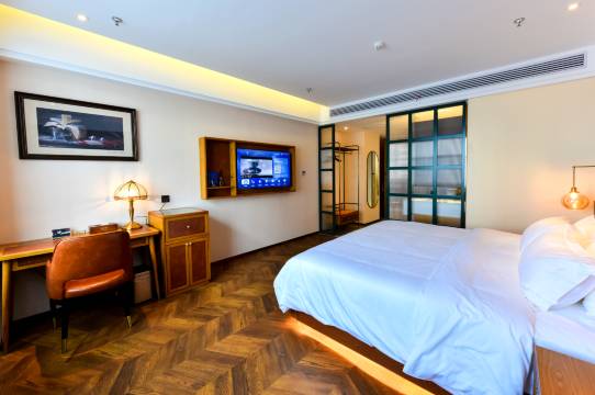 非常好的入住体验,进入前台,前台十分热情,我定的是啡凡房型,考虑到怕吵,前台给我升级了豪华房型,十分的细心和贴心,服务态度很好,及时的推荐了对面的饭店,告知了停车地方出入,上了酒店房间,看见房间也是超级大,干净整洁,整个风格就是那种复古且装修有特色的,喜欢这种风格,大家可以来选择这里呢,还不错!